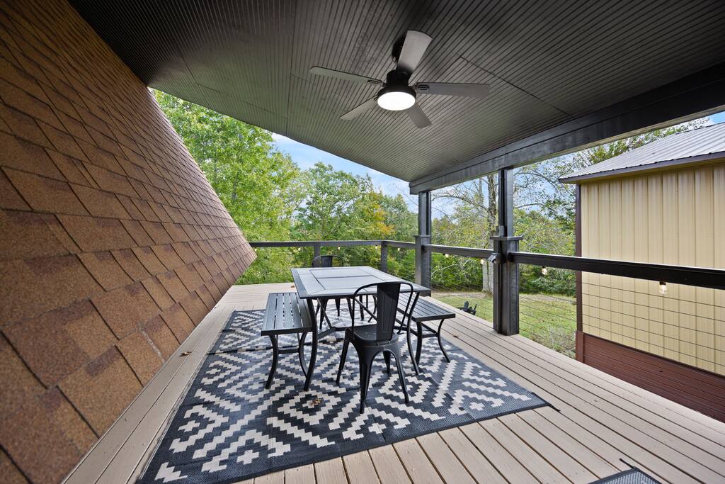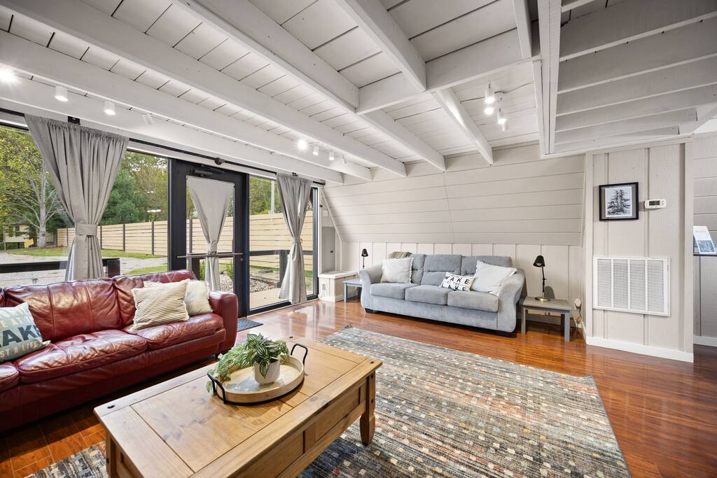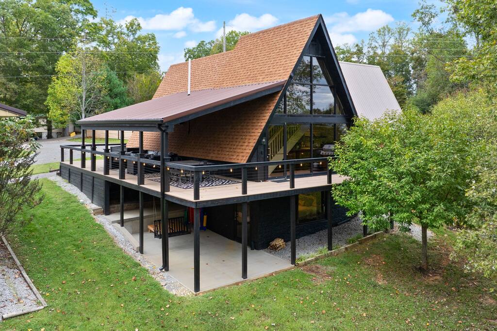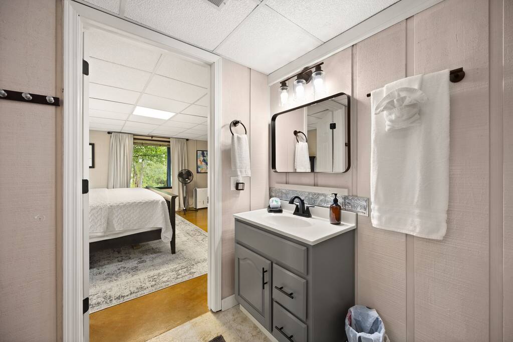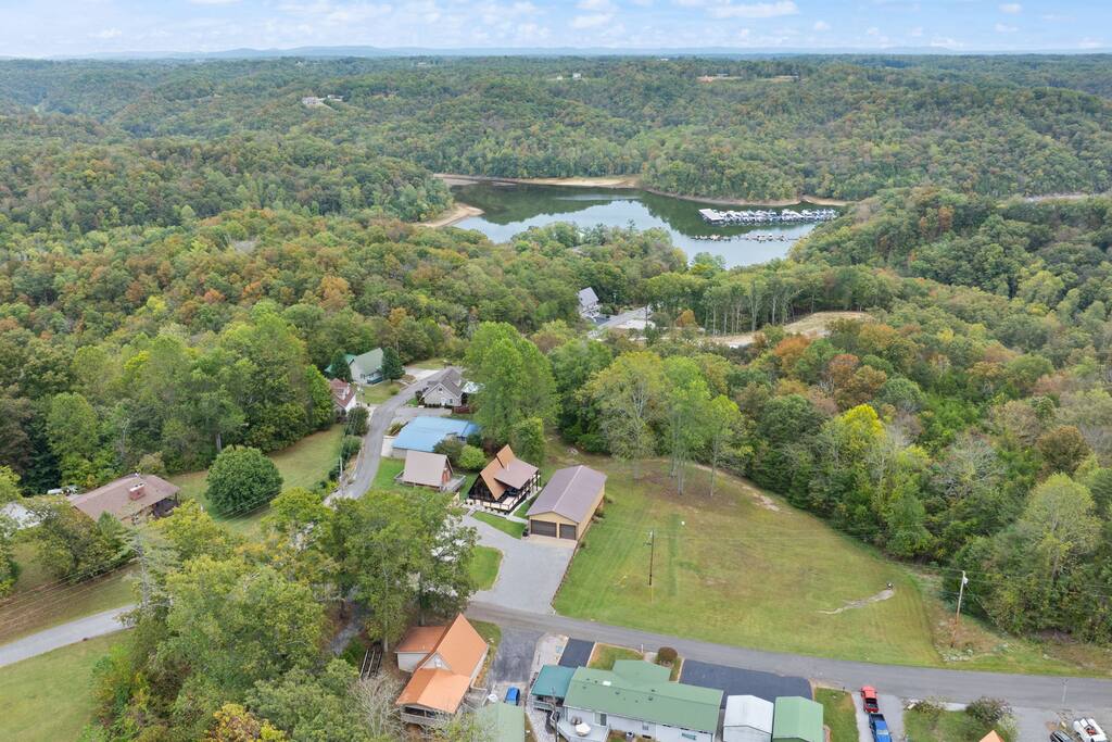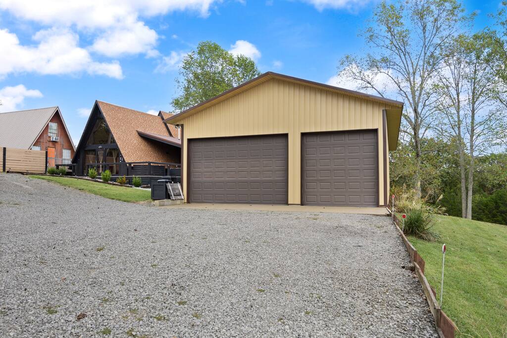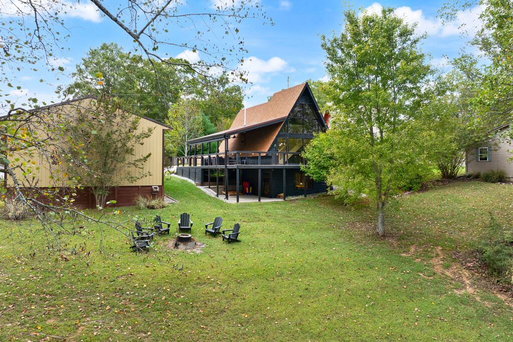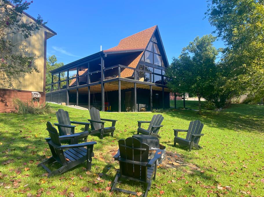 The space MAIN LEVEL: INDOOR LIVING: 65” Smart Roku TV, 1 sleeper sofa, 1 couch, 1 queen air mattress, dining table/stools, WI-FI router, wood flooring throughout, blackout curtains. BATHROOM 1: Full bathroom (Shower), Closet with linens and basic toiletries. KITCHEN: Fully stocked kitchen with dishware, flatware, pots, pans, bakeware, glassware, and cooking utensils. Appliances include a Keurig and drip coffee maker, crockpot, griddle, hand mixer, toaster, blender, dishwasher, refrigerator with ice maker, glass top range, and microwave. Dining table/chairs, outside access to patio/deck, stairwell to upstairs and downstairs bedrooms. Also provided: starter supply of coffee pods/coffee, sugar, creamer, tea, salt/pepper, oil and dishwasher pods. UPPER LEVEL: LOFT AREA: Futon, 43” Smart Roku TV, bean bags, blackout curtains, ceiling fan, lamp. BEDROOM 1: 50” Smart Roku TV, King Bed, trundle Day Bed, nightstand, blackout curtains, 3 ceiling fans. LOWER LEVEL: LAUNDRY: Washer and Dryer at base of stairs, starter supply of laundry pods. BEDROOM 2: 70” Smart Roku TV, King Bed, 2-night stands, closet, outside access to lower concrete patio with porch swing. BATHROOM 2: Full Bath (Shower), closet with linens and basic toiletries. GENERAL: Free WiFi, complimentary toiletries, hair dryer, towels & linens, washer & dryer, patio furniture, 6 Adirondack chairs, grill, fire pit, detached garage (boat storage), Corn hole boards, outdoor connect-four yard game, padded outdoor patio furniture.. PARKING: Gravel driveway with parking space for up to 4 vehicles outside the garage. GARAGE: 30ft. X 64 ft. Two-bay garage with door sizes of 16ft x 10ft and 10ft x 10ft. We will store our boats during the off-season, but the garage remains available for guest use, accommodating one truck and a boat. **BOAT SLIP: The uncovered slip does not have electrical outlets. Details and a parking pass are provided at check-in. The boat slip is seasonal, as the water level decreases in winter; during that time, you will need to use the main dock. Things to note: The house is located in a residential area. Please be considerate of local residents and observe quiet hours from 9:30 PM to 8:00 AM. No pets or smoking allowed. Please do not climb on the deck's cable railing. Please treat the house as if it were your own. A starter supply of toilet tissue, paper towels, trash bags, dish soap, and laundry pods is provided. Extra linens and towels, as well as blankets and pillows, can be found in the closets. Self-check-in is available using the Wi-Fi keypad lock on the garage. A door code will be provided at least 24 hours before your arrival. The key to the house is located inside the garage. **Wildlife and Bugs:** Being close to the lake/woods, encounters with wildlife and bugs may occur. We have monthly pest control services, but it is advisable to keep windows and doors closed. Brooms and a vacuum are available for your convenience, including a small vacuum for ladybugs. You may see squirrels, raccoons, bears, turkeys, snakes, deer, and other wildlife. Please exercise caution. Please be aware that the gas grill is located outside, making it difficult to clean between guests. Depending on how the previous guest left it, you may need to clean it before use.