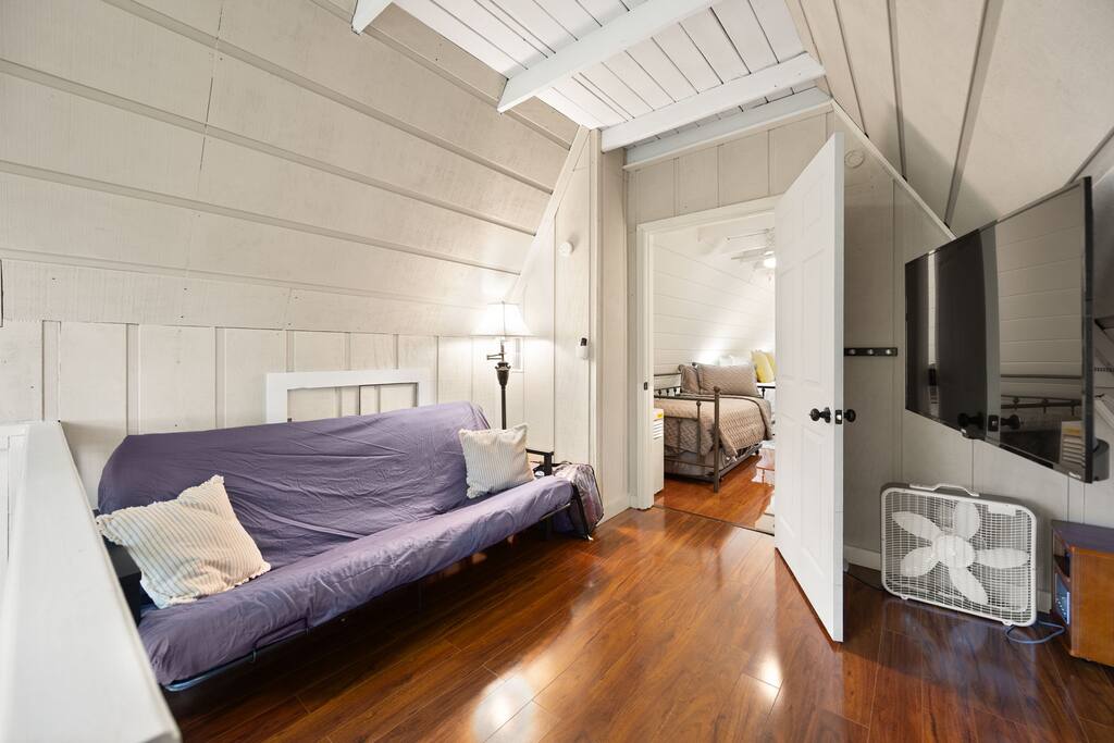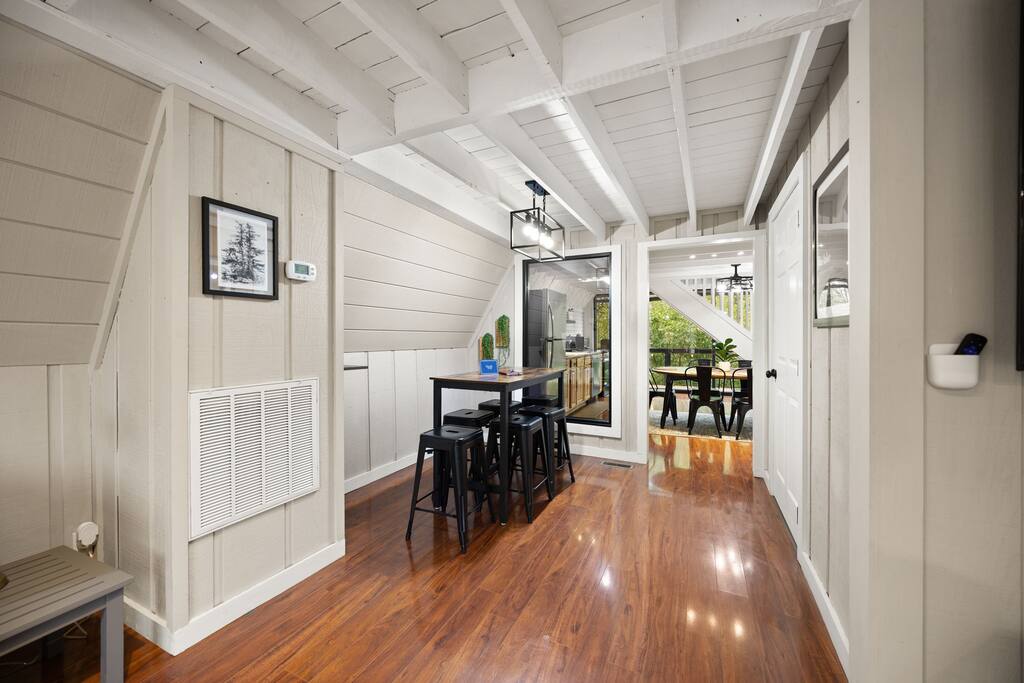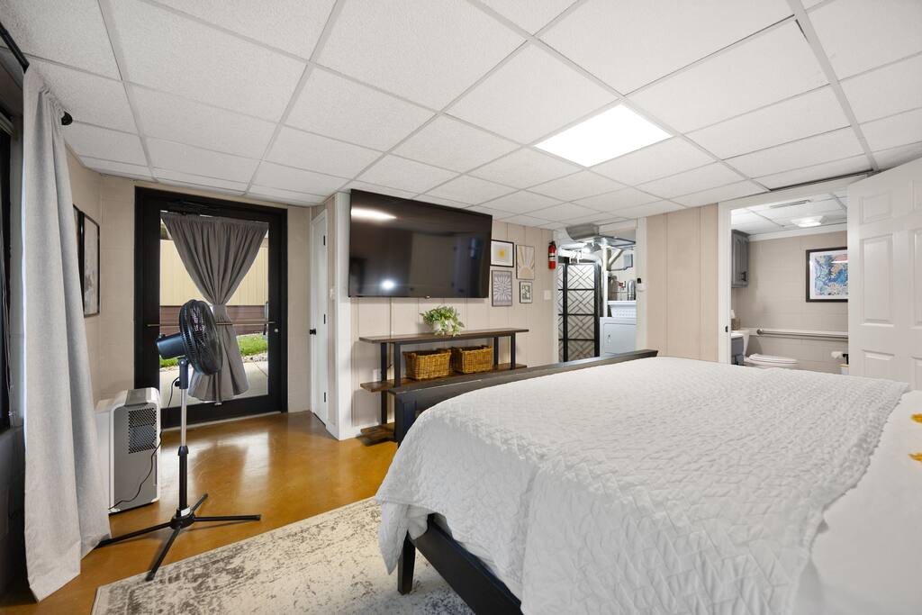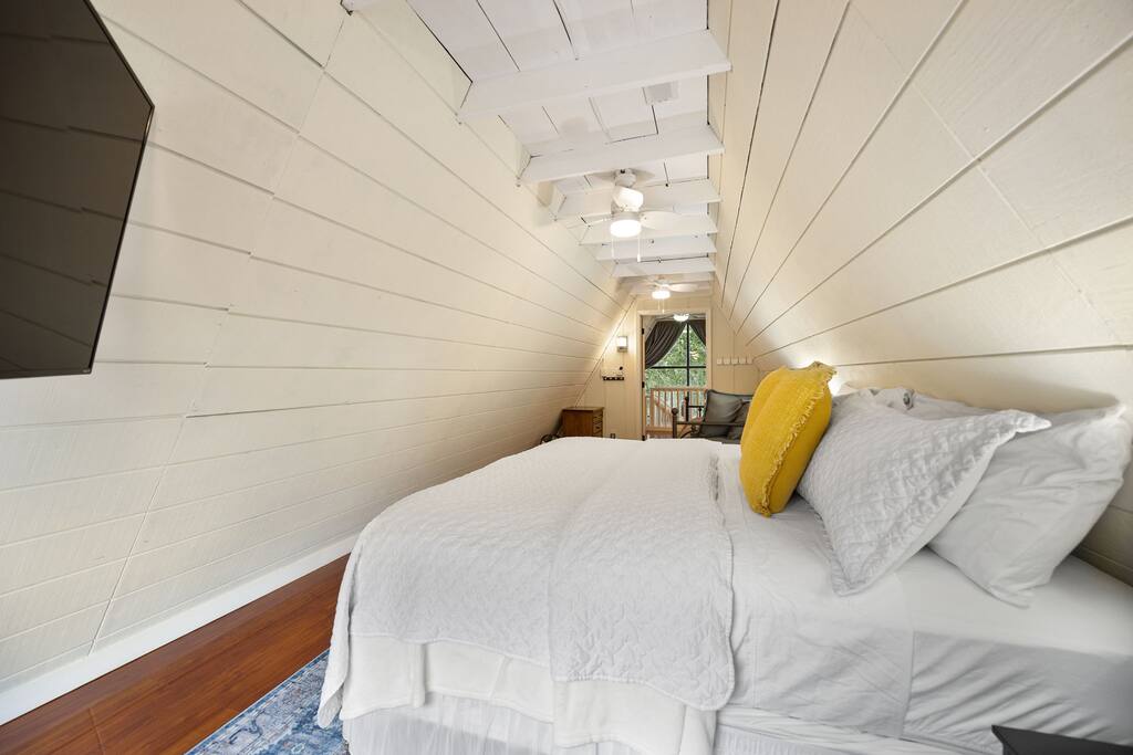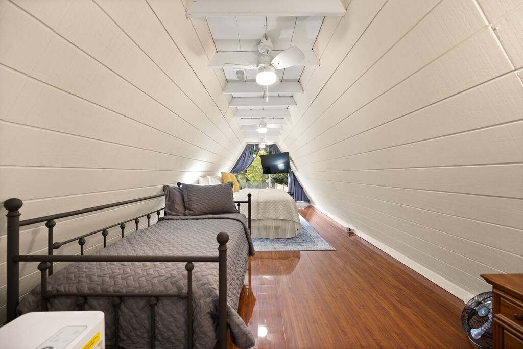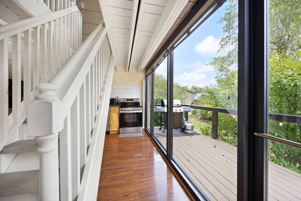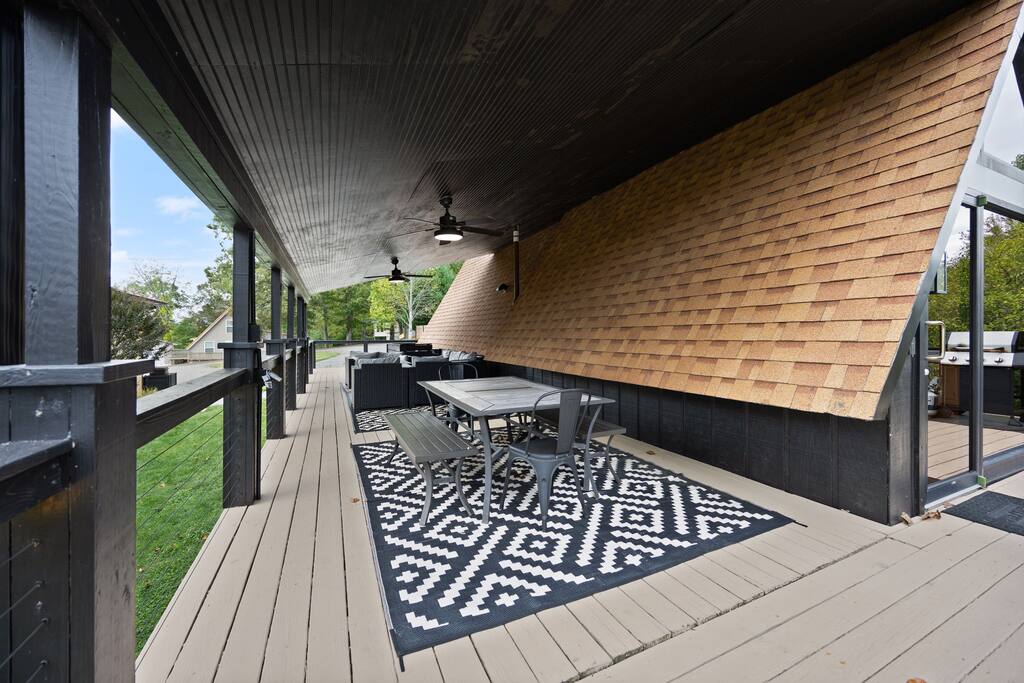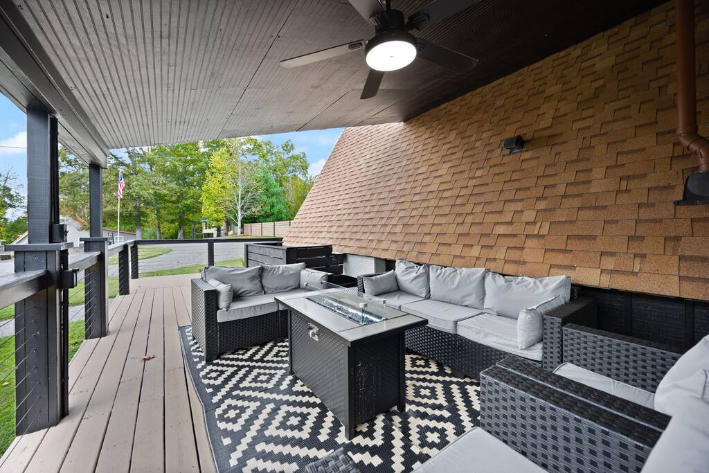 The space MAIN LEVEL: INDOOR LIVING: 65” Smart Roku TV, 1 sleeper sofa, 1 couch, 1 queen air mattress, dining table/stools, WI-FI router, wood flooring throughout, blackout curtains. BATHROOM 1: Full bathroom (Shower), Closet with linens and basic toiletries. KITCHEN: Fully stocked kitchen with dishware, flatware, pots, pans, bakeware, glassware, and cooking utensils. Appliances include a Keurig and drip coffee maker, crockpot, griddle, hand mixer, toaster, blender, dishwasher, refrigerator with ice maker, glass top range, and microwave. Dining table/chairs, outside access to patio/deck, stairwell to upstairs and downstairs bedrooms. Also provided: starter supply of coffee pods/coffee, sugar, creamer, tea, salt/pepper, oil and dishwasher pods. UPPER LEVEL: LOFT AREA: Futon, 43” Smart Roku TV, bean bags, blackout curtains, ceiling fan, lamp. BEDROOM 1: 50” Smart Roku TV, King Bed, trundle Day Bed, nightstand, blackout curtains, 3 ceiling fans. LOWER LEVEL: LAUNDRY: Washer and Dryer at base of stairs, starter supply of laundry pods. BEDROOM 2: 70” Smart Roku TV, King Bed, 2-night stands, closet, outside access to lower concrete patio with porch swing. BATHROOM 2: Full Bath (Shower), closet with linens and basic toiletries. GENERAL: Free WiFi, complimentary toiletries, hair dryer, towels & linens, washer & dryer, patio furniture, 6 Adirondack chairs, grill, fire pit, detached garage (boat storage), Corn hole boards, outdoor connect-four yard game, padded outdoor patio furniture.. PARKING: Gravel driveway with parking space for up to 4 vehicles outside the garage. GARAGE: 30ft. X 64 ft. Two-bay garage with door sizes of 16ft x 10ft and 10ft x 10ft. We will store our boats during the off-season, but the garage remains available for guest use, accommodating one truck and a boat. **BOAT SLIP: The uncovered slip does not have electrical outlets. Details and a parking pass are provided at check-in. The boat slip is seasonal, as the water level decreases in winter; during that time, you will need to use the main dock. Things to note: The house is located in a residential area. Please be considerate of local residents and observe quiet hours from 9:30 PM to 8:00 AM. No pets or smoking allowed. Please do not climb on the deck's cable railing. Please treat the house as if it were your own. A starter supply of toilet tissue, paper towels, trash bags, dish soap, and laundry pods is provided. Extra linens and towels, as well as blankets and pillows, can be found in the closets. Self-check-in is available using the Wi-Fi keypad lock on the garage. A door code will be provided at least 24 hours before your arrival. The key to the house is located inside the garage. **Wildlife and Bugs:** Being close to the lake/woods, encounters with wildlife and bugs may occur. We have monthly pest control services, but it is advisable to keep windows and doors closed. Brooms and a vacuum are available for your convenience, including a small vacuum for ladybugs. You may see squirrels, raccoons, bears, turkeys, snakes, deer, and other wildlife. Please exercise caution. Please be aware that the gas grill is located outside, making it difficult to clean between guests. Depending on how the previous guest left it, you may need to clean it before use.